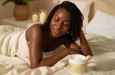 This body butter melts into my skin, leaving a soft, calm glow that lasts all day.